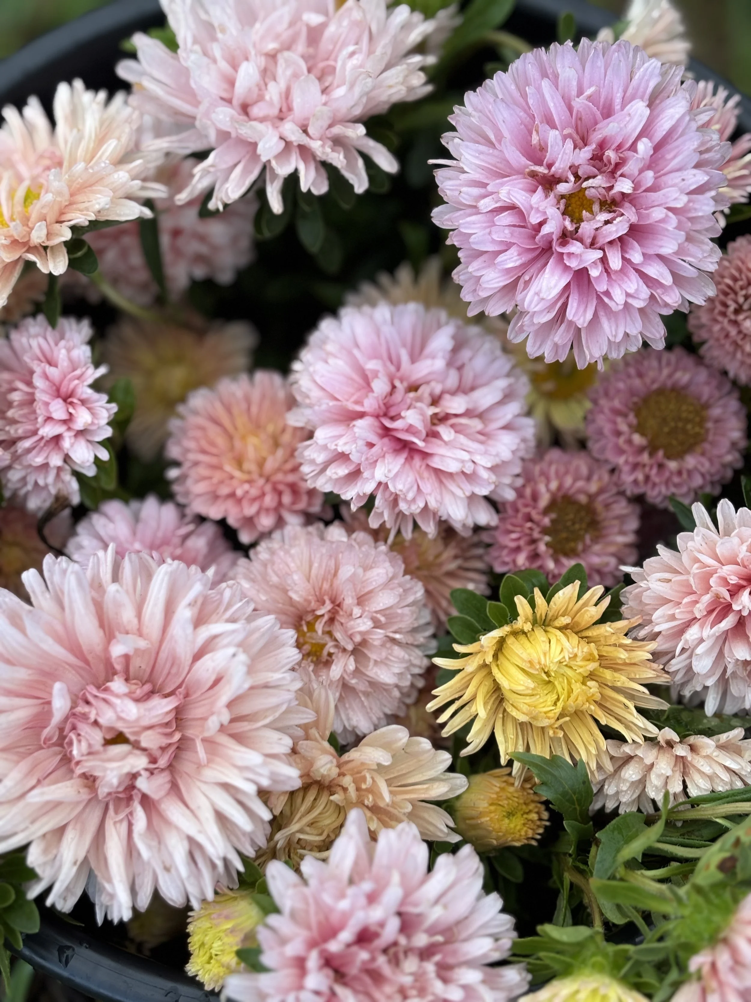 Our seasonal flowers can be ordered May - October either by the bucket or as a hand-tied bouquet.